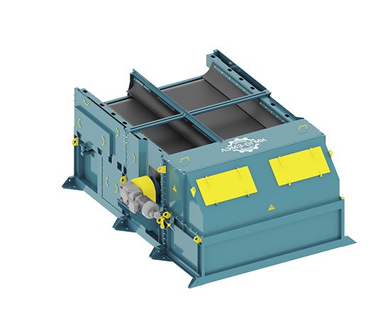 Сепараторы магнитные ленточные предназначены для сухого обогащения магнетитовой руды крупностью до 60мм с разделением на 2 продукта: магнитный и немагнитный. Принцип работы сепаратора основан на транспортировке потока материала и дальнейшем выделении магнитных фракций с помощью поля, создаваемого магнитной системой на рабочей поверхности конвейерной ленты.